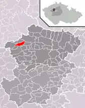 Se encuentra ubicada al noroeste de la región y de Praga, a poca distancia al norte del río Berounka —un afluente izquierdo del río Moldava—, y cerca de la frontera con la región de Ústí nad Labem.[1]