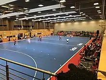 El hockey sala es un deporte que enfrenta a dos equipos de seis jugadores con dos porterías con redes (una a cada lado del campo) y en el que los jugadores utilizan un stick o palo de madera o fibra con forma curva para conducir una pelota de caucho, con el fin de introducirla en la portería del rival. La duración de un partido será de dos periodos de 20 minutos cada uno, con un descanso intermedio de 5 minutos. Sin embargo, las federaciones nacionales pueden variar la duración de los partidos en competiciones bajo su jurisdicción. El campo de juego mide 36-44 metros de largo y 18-22 metros de ancho, un tamaño similar al de fútbol sala.