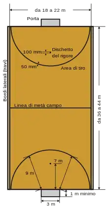- Las mallas de la portería serán como máximo de 3.8 cm y como mínimo de 3 cm.