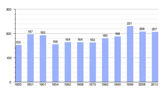 Gráfica de evolución demográfica de Hohatzenheim entre 1800 y 2013 |