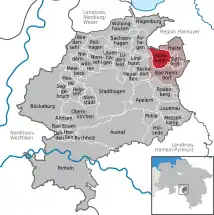 Se encuentra ubicado a poca distancia al este de la frontera con el estado de Renania del Norte-Westfalia, y al oeste de Hannover, la capital del estado.
