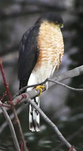 ![]() Un halcón Esparvero chico "Sharp-shinned Hawk" (Accipiter striatus) en "Gildersleeve mountain". | ||