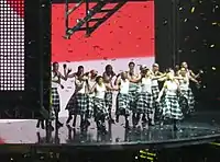 Centro: La cantante y sus bailarines interpretando el tema como el último de la gira de 2004 Re-Invention World Tour