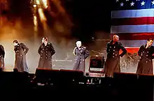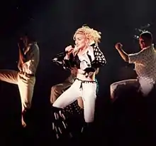 Para el Girlie Show de 1993, el tema se presentó antes del encore.[88] Madonna y sus bailarines usaron largas gabardinas azules y, a la mitad de la actuación, realizaron un desfile militar mientras en el fondo del escenario se colocaba una gran bandera estadounidense.[89] Durante el espectáculo de Puerto Rico, mientras cantaba, frotó la bandera nacional de la isla entre sus piernas, acción que causó una gran controversia.[90] El concierto en Sídney fue grabado y la canción se incluyó en el vídeo The Girlie Show - Live Down Under.[88] Ocho años después, para el Drowned World Tour, se utilizó una remezcla con elementos de «Music Sounds Better With You» (1998), de la banda Stardust, y la interpretó tras «La isla bonita», de True Blue (1986).[91][92] Acompañada de sus coristas Niki Haris y Donna De Lory, la cantante portó un sombrero fedora rojo y un atuendo negro diseñado por la casa de modas italiana Dolce & Gabbana, que consistía en una blusa con las palabras «Mother» en el frente y «F*cker» en la parte posterior, un pantalón y un abrigo de piel blanco.[93] De la presentación, Janet Cienfuegos O. de El Diario de Hoy opinó que «conectó el pasado con su presente» y además dejó claro que «la gente quiere más de su música anterior aun cuando ella insista en dar poco».[94] La actuación del 26 de agosto en el Palace of Auburn Hills se incluyó en el vídeo Drowned World Tour 2001.[95]