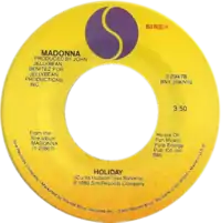 «Holiday» es una canción interpretada por la cantante estadounidense Madonna, incluida en su álbum debut homónimo. La compañía discográfica Sire Records la publicó el 7 de septiembre de 1983 como el tercer sencillo del disco, y figuró en el álbum de remezclas You Can Dance (1987) y en los recopilatorios The Immaculate Collection (1990) y Celebration (2009). Curtis Hudson y Lisa Stevens, de la banda Pure Energy, compusieron el tema, mientras que John «Jellybean» Benítez lo produjo. Este último se lo ofreció a Madonna cuando se encontraba buscando un éxito potencial para su álbum debut y, tras aceptarlo, se encargaron de cambiar la composición mediante la adición de un solo de piano, realizado por su amigo, el músico Fred Zarr. «Holiday» cuenta con instrumentos tales como guitarras, aplausos electrónicos, un cencerro y un arreglo de cuerdas sintetizado, mientras que la letra expresa el sentimiento universal de que todo el mundo necesita un descanso.
