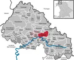 Se encuentra ubicado al norte del estado, en la región de Baja Franconia, cerca de la frontera con el estado de Turingia.