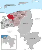 Se encuentra ubicado al norte del estado, a poca distancia de la costa del mar del Norte.
