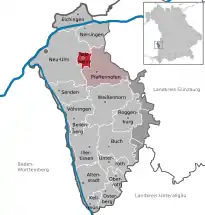 Se encuentra ubicado al oeste del estado, en la región de Suabia, a poca distancia de la frontera con el estado de Baden-Wurtemberg.