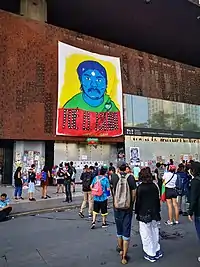 Conmemoración del aniversario de la muerte de Camilo Catrillanca en el frontis del Centro Cultural Gabriela Mistral, en Santiago.