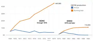 Incapaz de surtir la demanda de la nueva moto, Honda limitó la inversión inicial de los moldes y matrices maestros de la CB750 al usar una técnica llamada vaciado con molde permanente en lugar de moldeo a presión, para los motores[23] – por la inseguridad de la recepción de la motocicleta. La motocicleta se mantuvo en producción por 10 años, con una producción total superior a las 400,000 motocicletas.[24]