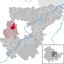 Se encuentra ubicado cerca de las ciudades de Jena, Weimar y Erfurt —la capital del estado—.