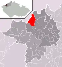 Se encuentra ubicada al noroeste de la región, en la ladera sur de los montes Metálicos, cerca del río Ohře —un afluente izquierdo del río Elba—, de la región de Karlovy Vary y del estado alemán de Sajonia.[1]