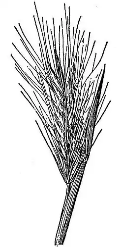 Es una hierba anual o perenne, erecta, que forma penachos de 20 a 70 centímetros de altura. La inflorescencia es una espiga de hasta unos 12 centímetros de longitud formada por espiguillas de hasta unos 3 centímetros de largo cada una, generalmente con punta de aristas .