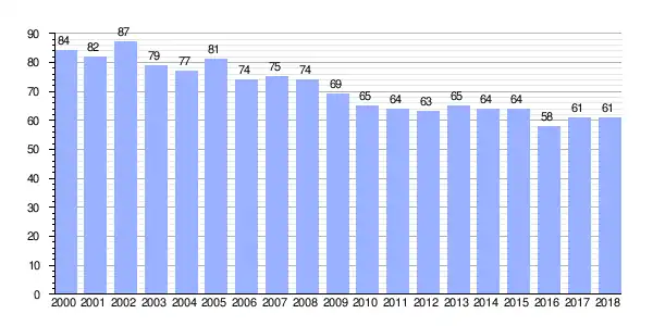 Gráfica de evolución demográfica de Hortas entre 2000 y 2018 |