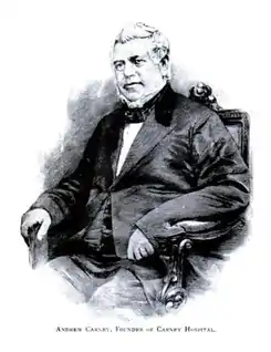 El Hospital Carney fue establecido en 1863 en el sur de Boston por la Hermana Ann Alexis Shorb, miembro de las Hijas de la Caridad de San Vicente de Paul después de haber recibido 75,000 dólares de parte de Andrew Carney. El hospital de 40 camas fue el primer hospital católico en Nueva Inglaterra. En 1877, se estableció el primer departamento ambulatorio en Boston en dos casas adyacentes, seguido por la primera clínica especializada en la piel en Boston en 1891. La primera cirugía abdominal en los Estados Unidos fue realizada en este hospital por John Homans en 1882. En ese mismo año, la primera ooforectomía en Boston fue llevada a cabo en el hospital Carney por Henry I. Bowditch. La primera escuela católica de enfermería en Nueva Inglaterra abrió sus puertas en 1892.