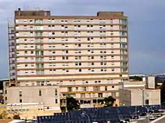 El hospital está compuesto por un edificio central y varios edificios más pequeños. Tiene 12 plantas en el edificio central y entre 2 y 3 en los otros edificios.