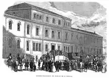 Inauguración del hospital antiguo, en 1857. Grabado publicado en El Museo Universal.