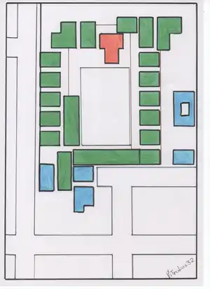 En color verde, pabellones médicos fundados en 1912 y años sucesivos.