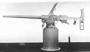 ![]() Un primigenio QF de 6 libras fabricado en Elswick, sobre afuste de pedestal. | ||