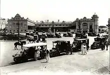 Comedor del Bristol Hotel, antes de la última ampliación que agregó un tercer pabellón sobre el jardín (ca. 1920)