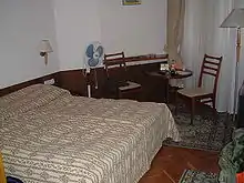 Las habitaciones son al estilo soviético turístico. Lo que significa que son muy básicas y estándar. Las habitaciones cuestan cerca de $ 125.00 USD por noche, más el IVA. Cada habitación viene con una TV, balcón, baño y más de una ducha.