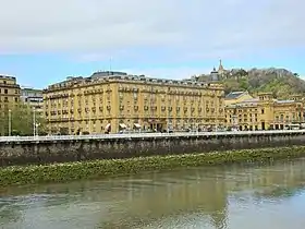 A comienzos del siglo XX San Sebastián comenzaba a convertirse en uno de los más importantes destinos turísticos de la burguesía española y europea. El desarrollo arquitectónico de la ciudad a partir del Ensanche racionalista de Cortázar, culminado en 1913, había configurado una ciudad de claro corte afrancesado a la que se pretendía dotar de los más avanzados equipamientos. Con este fin, un grupo de donostiarras visionarios creó en 1902 la Sociedad de Fomento de San Sebastián, un organismo privado cuyo principal objetivo era dotar a la ciudad de un gran hotel de lujo y de un teatro.