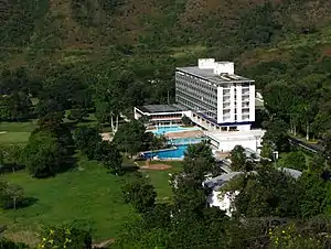 ![]() Hotel Maracay en el centro, cerro de montaña adyacente y campo de Golf al fondo | ||