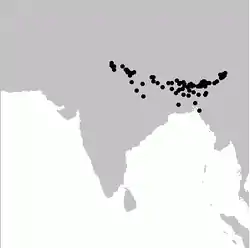 - Houbaropsis bengalensis bengalensis - praderas del este y norte de la India y Nepal.