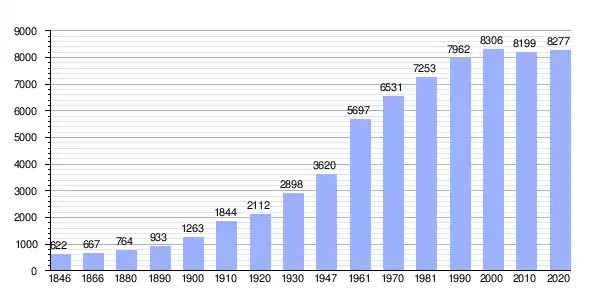Gráfica de evolución demográfica de Hove entre 1846 y 2020 |