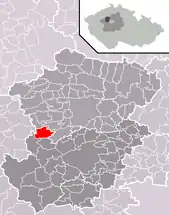 Se encuentra ubicada al noroeste de la región y de Praga, a poca distancia al norte del río Berounka —un afluente izquierdo del río Moldava—, y cerca de la frontera con la región de Ústí nad Labem.[1]
