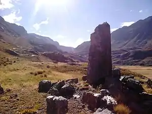 - Huancas de los caminos: se ubican en puntos en los caminos que demarcan un inicio, un fin o un punto alto, cumpliendo una función similar a las apachetas y posteriormente a los ushnus incas del Horizonte Tardío.[36]