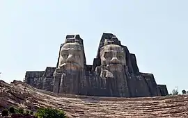 Se trata de un doble busto de cemento reforzado con sillares de piedra blanca, en el que sobresalen las caras de 50 m de los emperadores Huangdi y Yandi. Simboliza el giro de Pekín hacia sus viejas tradiciones y costumbres.