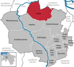 ![]() ![]() Hude Ubicación en el estado de Baja Sajonia | ||