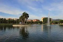Construido sobre los terrenos donde estuvo la fábrica "La Constancia",[8] uno de los primeros Altos Hornos de España, el Parque de Huelin es un espacio verde con más de 700 árboles y una superficie de 32.000 m². Allí se pueden encontrar dos lagos artificiales, dos zonas con columpios para los niños y niñas. Además hay un pequeño campo de fútbol con césped artificial.