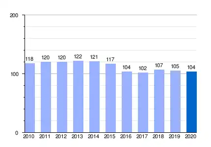 Gráfica de evolución demográfica de Huerta Real entre 2010 y 2020 |