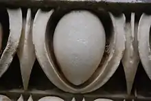 El huevo es un motivo de ornamentación corriente que tiene esta forma y sirve para decorar por lo común las molduras cuyo perfil es de un cuarto de círculo.[1]