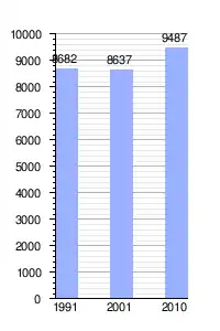 Gráfica de evolución demográfica de Huinca Renancó entre 1991 y 2010 |