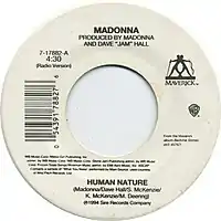 «Human Nature» es una canción interpretada por la cantante estadounidense Madonna, incluida en su sexto álbum de estudio, Bedtime Stories (1994). Las compañías Maverick, Sire y Warner Bros. Records la publicaron como el cuarto y último sencillo del disco el 5 de mayo de 1995 en Europa y Australia y el 6 de junio en Estados Unidos. Seis años después, figuró en el grandes éxitos GHV2 (2001). Compuesta y producida por Madonna y Dave «Jam» Hall, contiene un sample de «What You Need» (1994), de la banda de hip hop Main Source, por lo que Shawn McKenzie, Kevin McKenzie y Michael Deering recibieron créditos como coautores. Fue compuesta como respuesta a las críticas que la cantante enfrentó por los proyectos que publicó años atrás, que se caracterizaron por su contenido sexual y explícito.