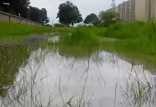 Por otra parte, a partir del seguimiento realizado a este humedal se ha confirmado que las aguas que lo alimentan provienen únicamente de las lluvias y que no recibe ningún tipo de vertimientos, manteniendo una calidad de agua ideal para la proliferación de diferentes formas de vida. En este ecosistema se han registrado poblaciones abundantes de especies que son usadas como indicadores biológicos de la calidad del agua, debido a que tienen una fase de su ciclo de vida con comportamientos acuáticos.[20][21][22][23] Del grupo de los anfibios se encuentra la rana sabanera (Dendropsophus labialis) la cual posee una abundante población y se registra de manera constante; y del grupo de los insectos se han reportado cinco especies de Odonatos. Por último, también se ha reportado la serpiente sabanera (Atractus crassicaudatus) la cual debido a las obras realizadas por las constructoras sobre el humedal ha sido afectada y se han encontrado individuos muertos entre el descapote.[24]