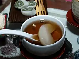 - Sudan (수단), hawchae con gyeongdan (경단, una variedad de tteok con forma de bola) en zumo con miel.[17]