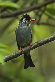 El bulbul negro (Hypsipetes leucocephalus)[2] es una especie de ave paseriforme de la familia Pycnonotidae propia del sureste de Asia y el Himalaya. Existen varias subespecies con mucha diferencia en su plumaje, cuyo tono puede oscilar desde el totalmente negro al gris; además algunas de ellas presentan la cabeza blanca, lo que da su nombre a la especie, leucocephalus, que en griego significa «cabeza blanca». Su pico y patas son siempre de color rojo anaranjado.
