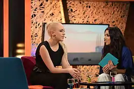 Entrevista en el transcurso del Festival de Eurovisión(izquierda).