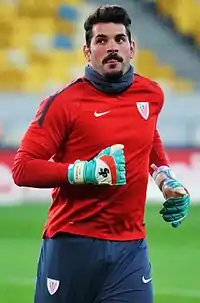 El 23 de agosto de 2013, con Iraizoz lesionado, debutó como portero del Athletic Club en un triunfo contra Osasuna (2-0).[18]El partido se jugó en Anoeta porque el nuevo estadio de San Mamés no estaba disponible. También fue titular en el primer partido del nuevo estadio de San Mamés, disputado el 16 de septiembre, ante el Celta de Vigo (3-2).[19]En su primera temporada, Ernesto Valverde apostó por darle la titularidad en Copa y optó por Iraizoz para la Liga. En su segunda temporada, además de en Copa, fue elegido para jugar la Liga Europa.[20]El 30 de mayo jugó la final de Copa del Rey. A pesar de rendir a gran nivel, su primera final acabó con derrota por 3-1 ante el FC Barcelona.[21]Su actuación en semifinales, ante el RCD Espanyol, fue decisiva para llegar a la final.[22]El 17 de agosto consiguió su primer título, aunque no disputó ninguno de los dos partidos. El Athletic se impuso por 5-1 al FC Barcelona en la final de la Supercopa de España.[23]Finalizó la temporada 2015-16 disputando 24 partidos, 16 de ellos de Liga Europa. Fue uno de los mejores jugadores del equipo durante toda la competición europea.[24]En los octavos de final, ante el Valencia, realizó una intervención decisiva a Paco Alcácer en los minutos finales.[25]En cuartos de final, ante el Sevilla, fue elegido en el once ideal de la jornada, aunque no pudo detener ningún lanzamiento en la tanda de penaltis.[26]En la temporada 2016-17, la competencia aumentó con la llegada de Kepa Arrizabalaga. Finalmente, fue elegido como titular en la Liga Europa.[27]