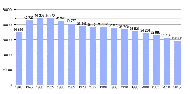 Gráfica de evolución demográfica de Ichikikushikino entre 1940 y 2015 |