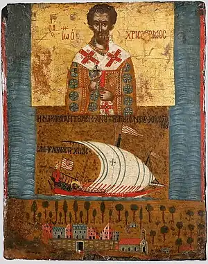 El icono de San Juan Crisóstomo de la isla de Kímolos es un icono de finales del siglo XVII. Entre los franceses y los cristianos de occidente la isla de Kímolos era conocida por el nombre de Argentaria.[1]