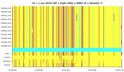 - HapFABIA: identifica segmentos muy cortos de IBD caracterizados por variantes raras en grandes datos de secuenciación simultánea en múltiples individuos[13]