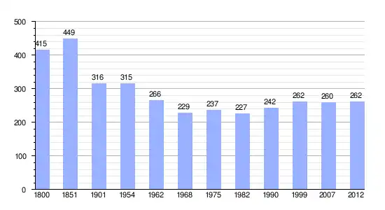 El resultado del año 1800 es la suma final de todos los datos parciales obtenidos antes de la creación de la comuna (27 de junio de 1842).