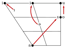 El idioma maranao tiene cuatro fonemas vocales que pueden volverse más cercanos o más altos en ciertos entornos (ver consonantes duras a continuación).[7] Los efectos de elevación de vocales de consonantes duras pueden haber llevado a los primeros estudios de la lengua a analizar el sonido [ɨ] como un fonema separado (escrito como ae) en lugar de un alófono elevado de /ə/.
