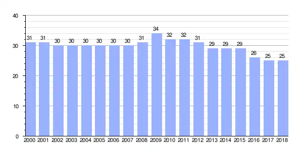 Gráfica de evolución demográfica de Iglesia entre 2000 y 2018 |