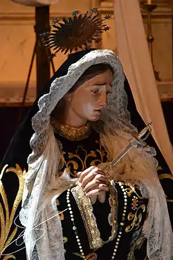Nuestra Señora de los Dolores. Imagen de finales del siglo XVIII, obra del insigne imaginero universal don José Luján Pérez.